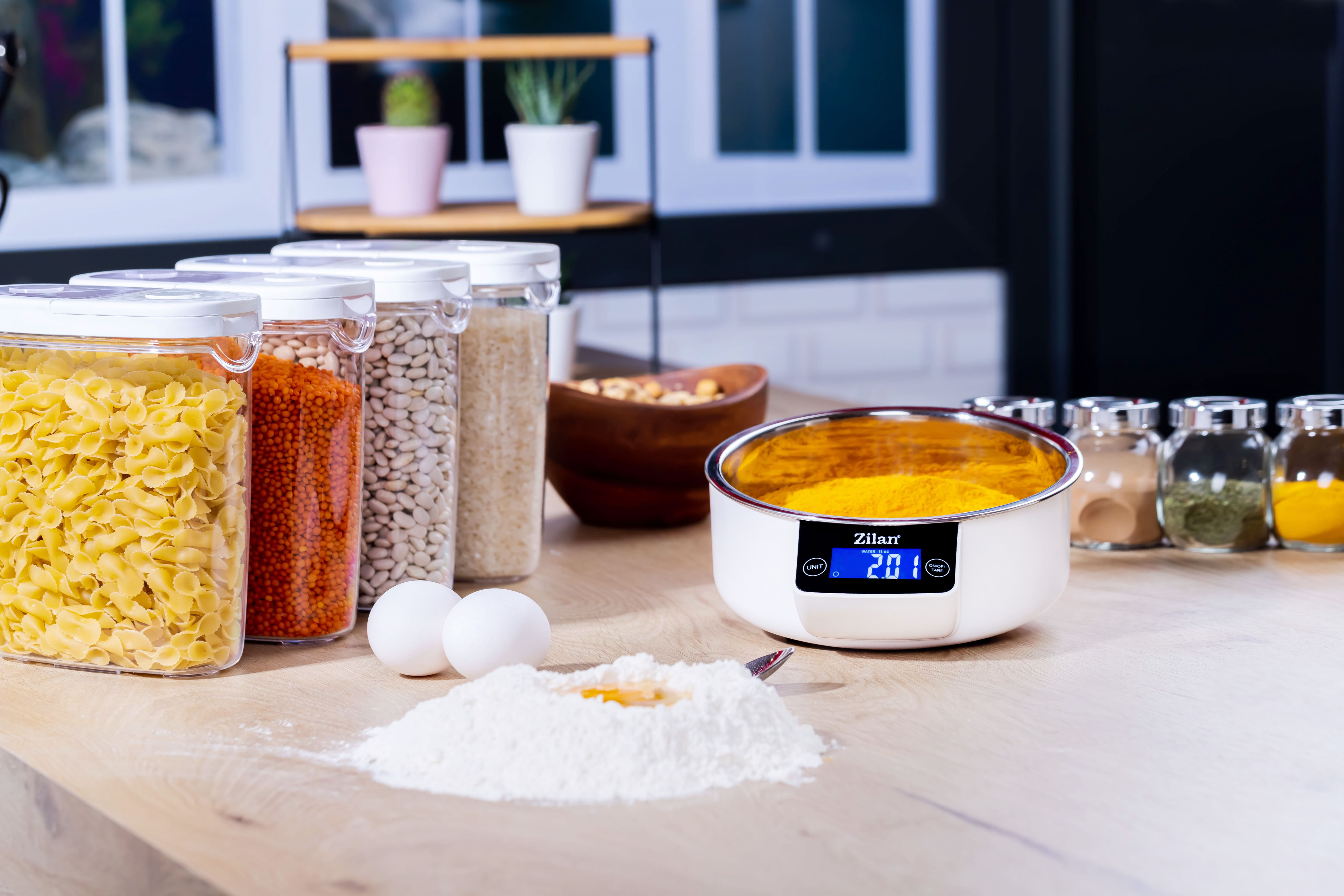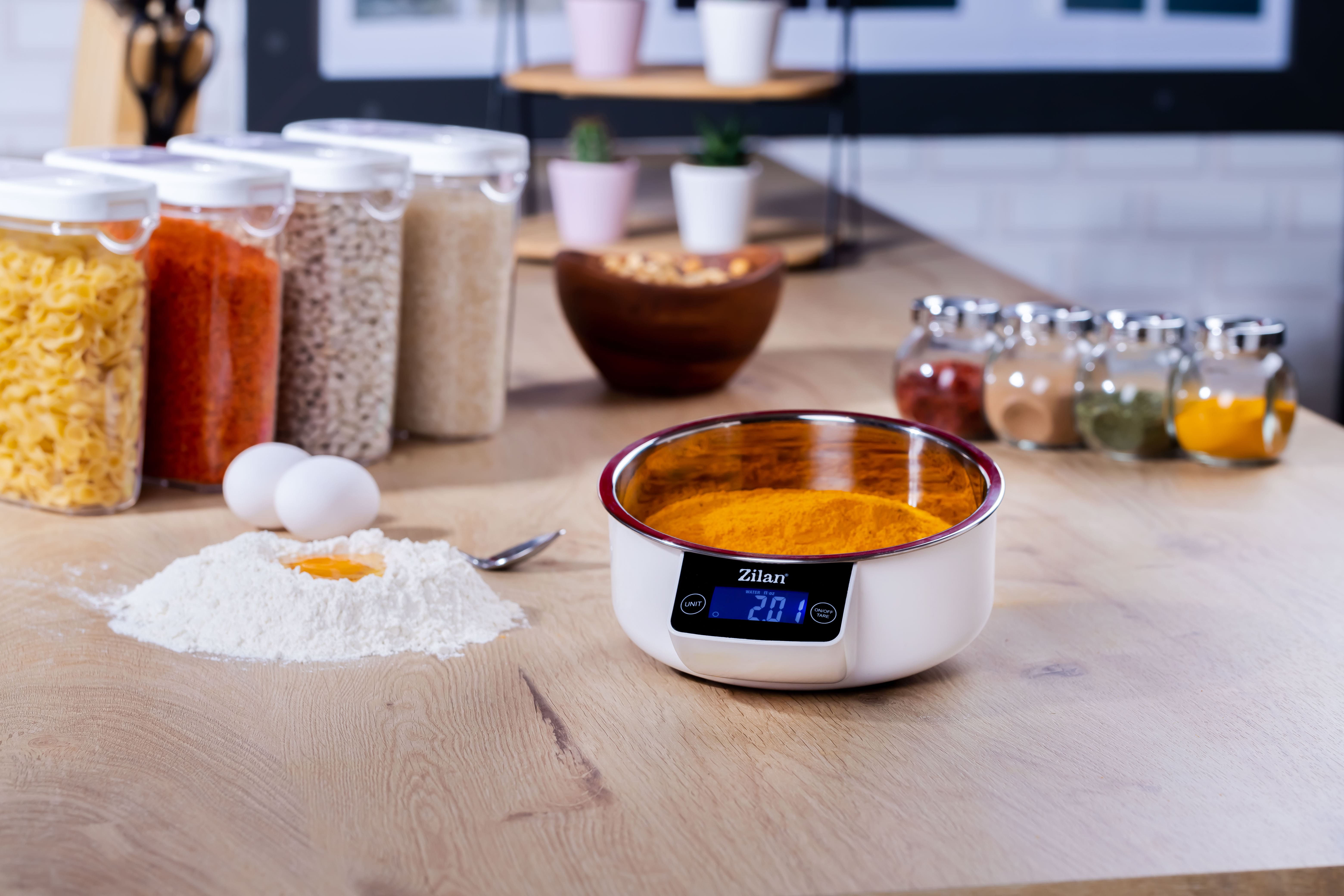 Cantar alimentar Zilan ZLN2977 Alb, ecran digital, bol de 900ml, capacitate maxima de 5 kg