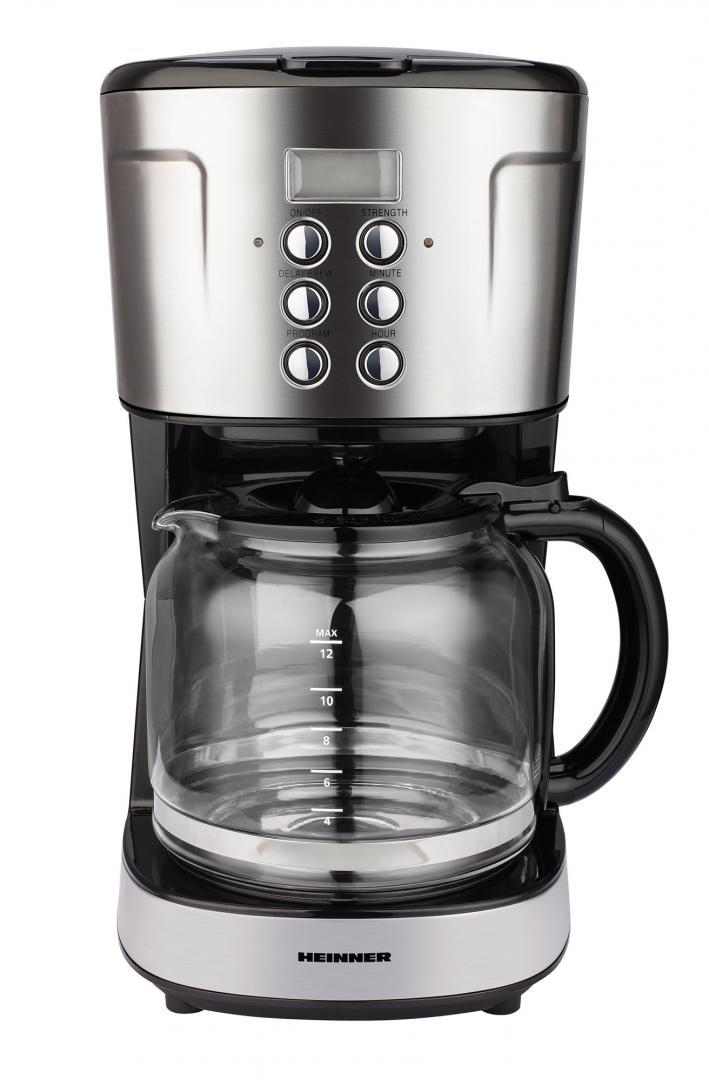 Cafetiera digitala Heinner HCM-D915BKS, control electronic, timer programabil, functie setare tarie cafea, afisaj LCD, capacitate: 1.5L, portfiltru si filtru detasabile si lavabile, oprire automata dupa 40 de minute, protectie impotriva functionarii fara apa, functie anti- picurare, putere: 900W, negru/inox