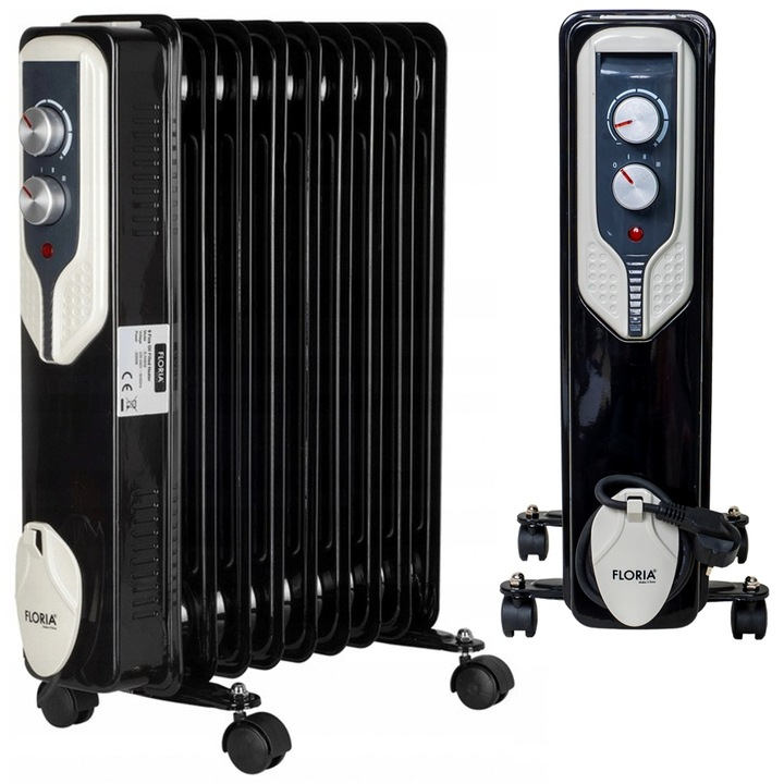 Calorifer electric Floria ZLN3659,Negru 2000 W, 9 elementi, 3 trepte de putere, Termostat reglabil, Protectie supra-incalzire, Indicator luminos,