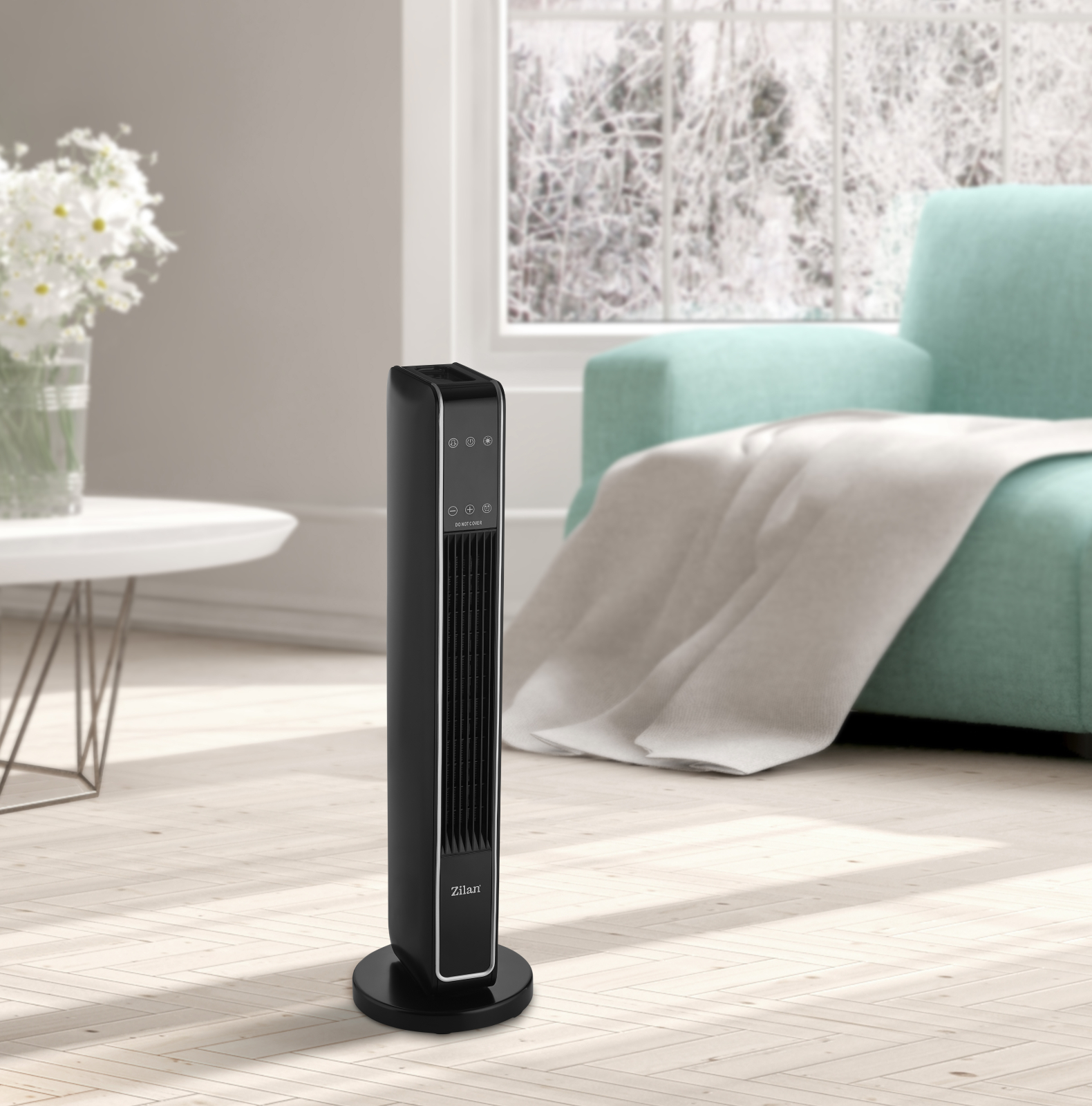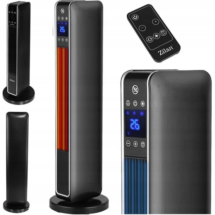 Aeroterma ceramica turn Zilan ZLN2076 Negru, 2200W, Ecran cu atingere, Timer 8H