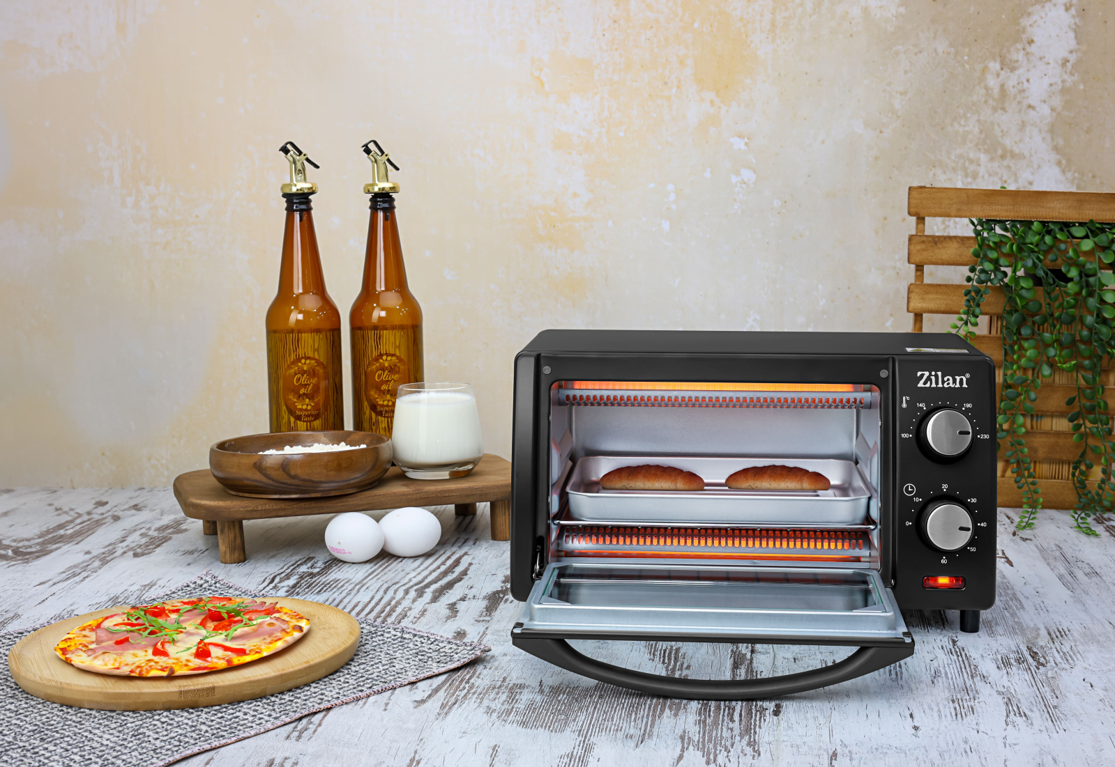 Mini cuptor Zilan-Roza ZLN4328, 9L, 800W, Geam dublu, Temporizator 60 min
