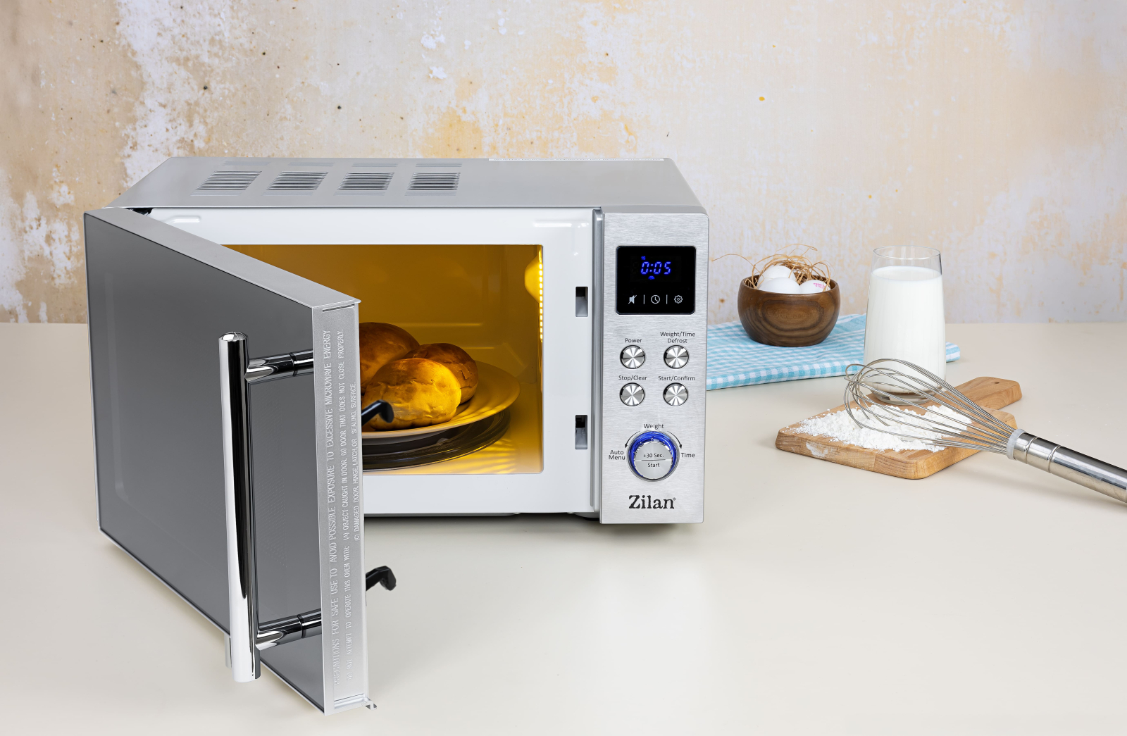 Cuptor cu microunde digital Zilan ZLN1238, Putere 700W, Capacitate 20L, Functie de dezghetare, Panou din inox, Afisaj digital