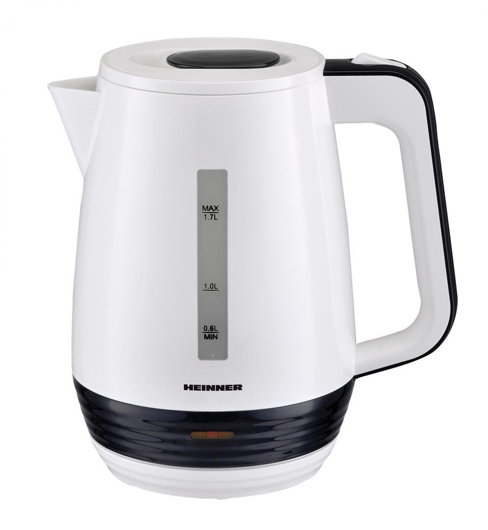 Fierbator Heinner HEK-17WH, 1.7 L, element incalzire inox, oprire automata, plastic, Negru/Alb