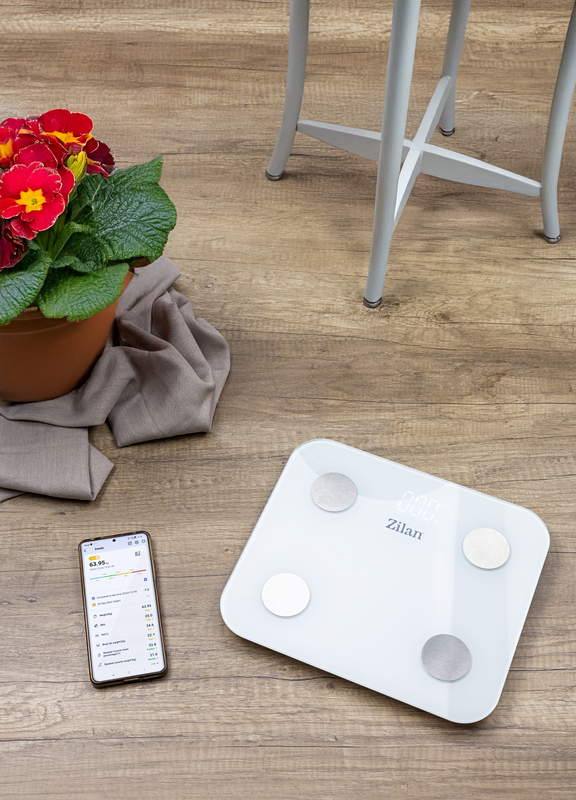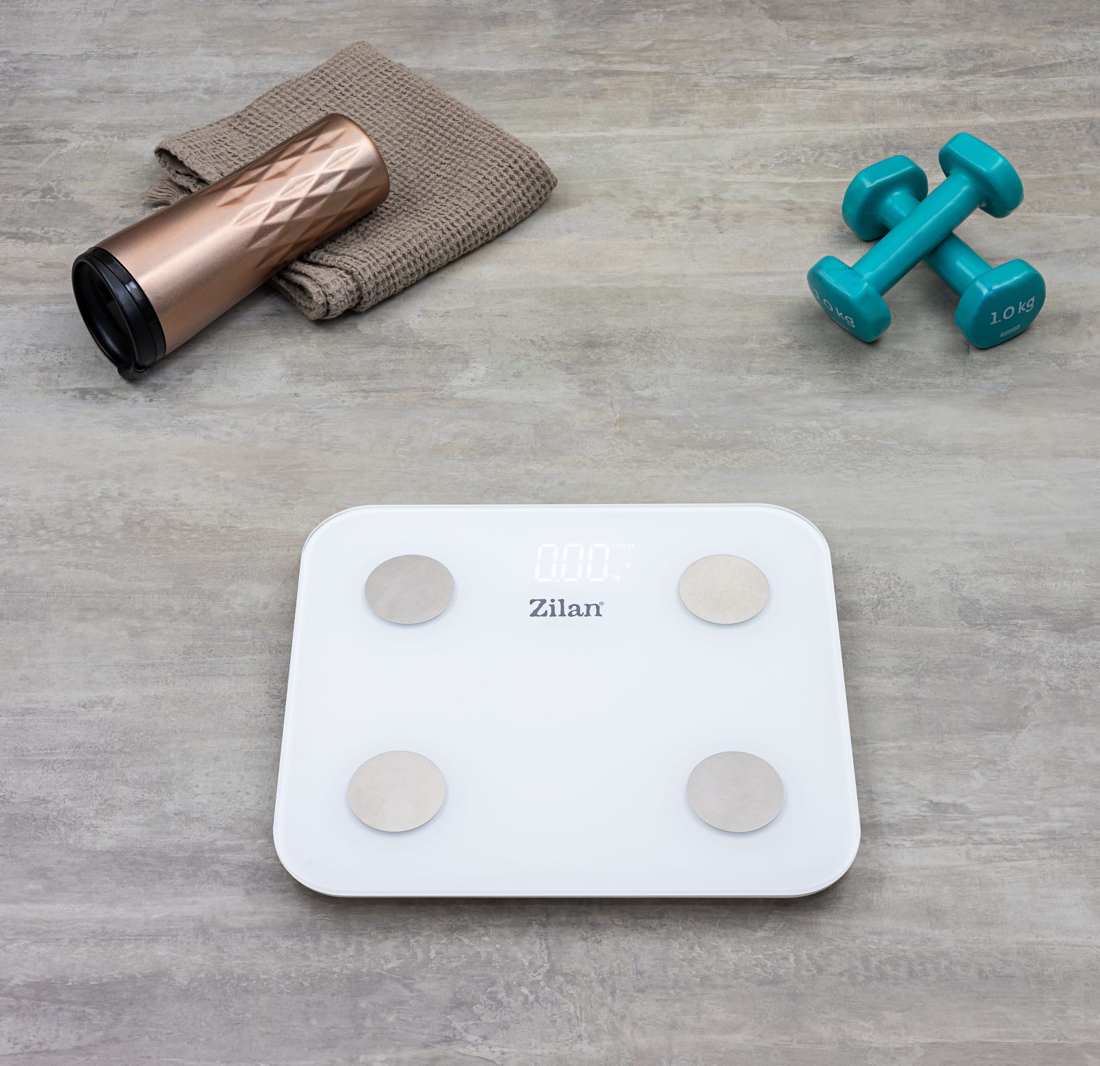 Cantar corporal Zilan ZLN9006 din sticla securizata, capacitate 3-180kg, Aplicatie OKOK, Display LED