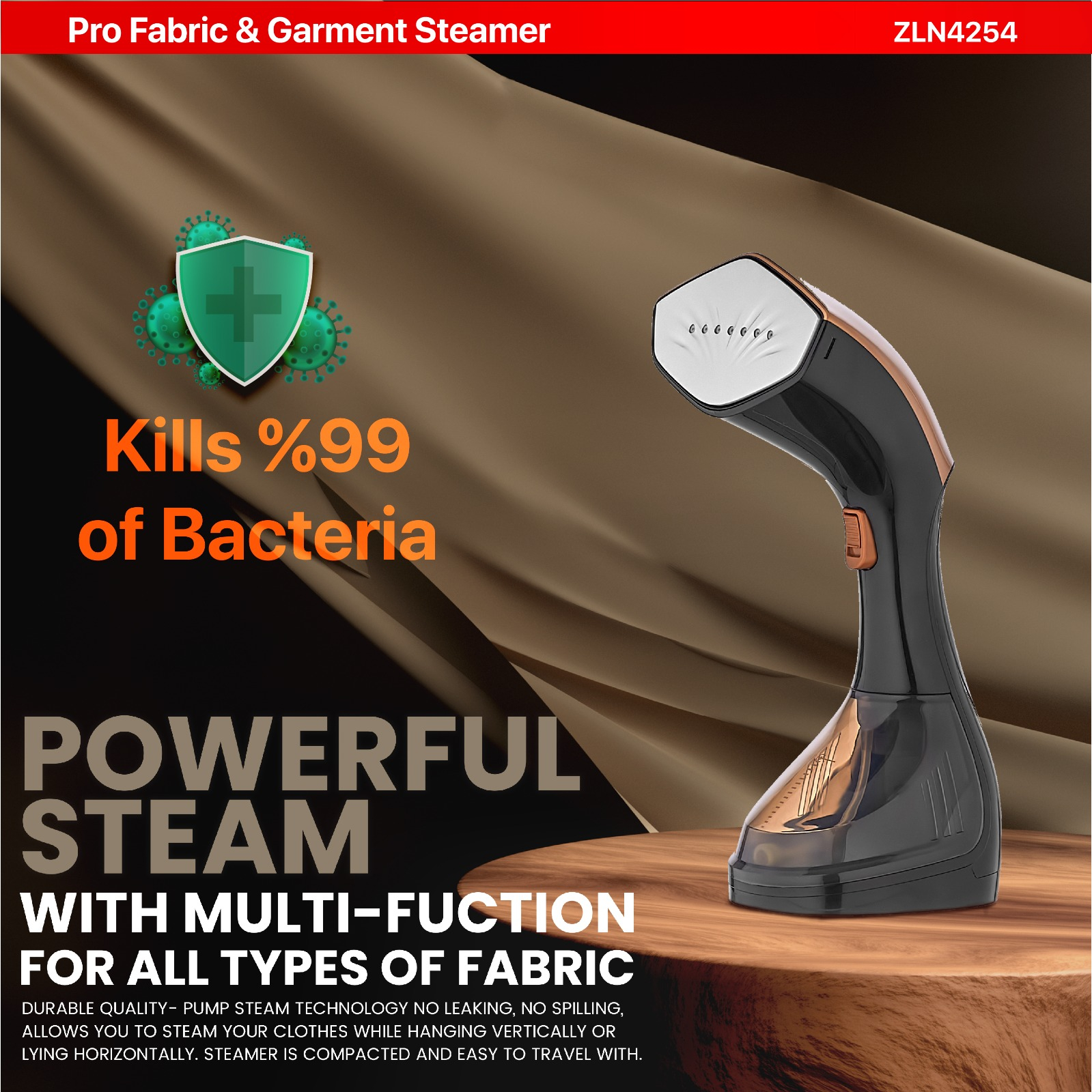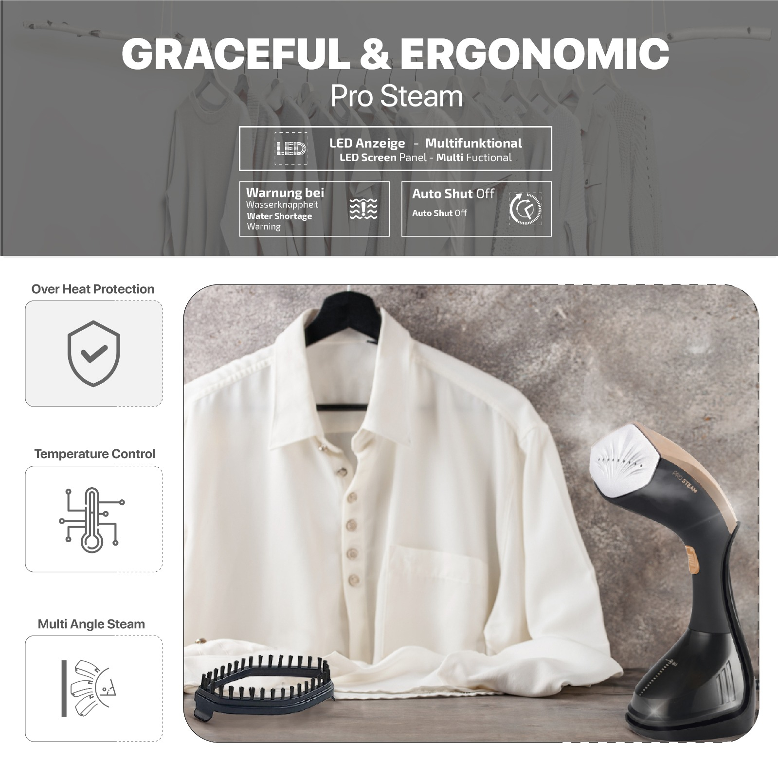 Fier de calcat vertical cu aburi Zilan ZLN4254 AURUM, 1600W, 25g/min, 230 ml, ecran LED multi functional