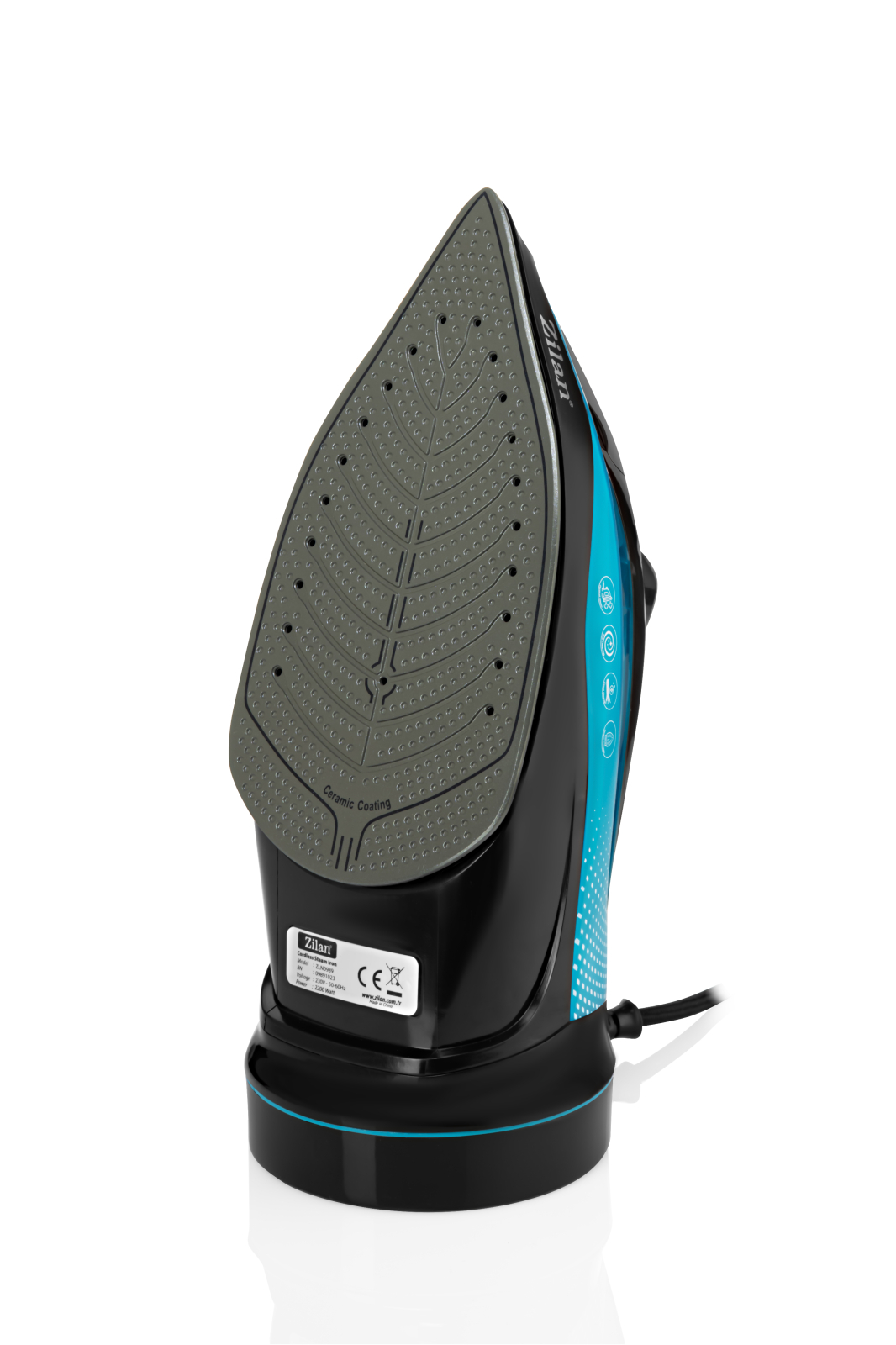 Fier de calcat Zilan ZLN0989, 2200W, Anti Calcar, Folosire cu sau fara cablu, Cablu rotativ 360, Termostat reglabil, Albastru