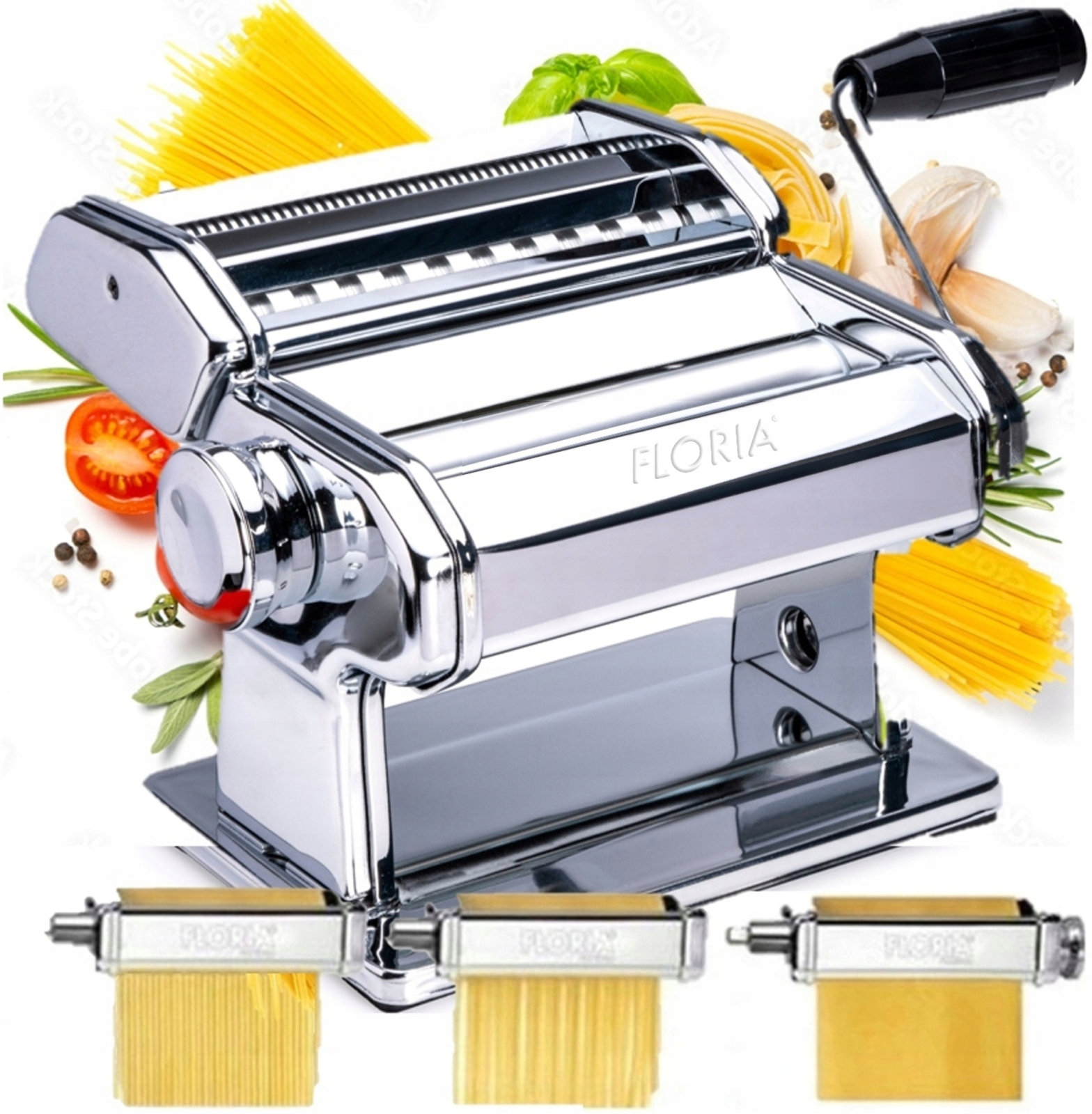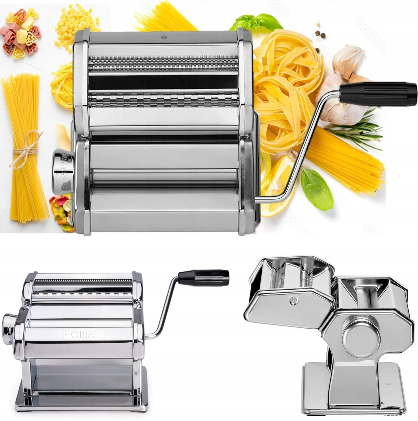 Aparat pentru paste Floria ZLN1129 ,9 posibilitati de reglare a grosimii, Otel inoxidabil, Accesoriu fixare de masa