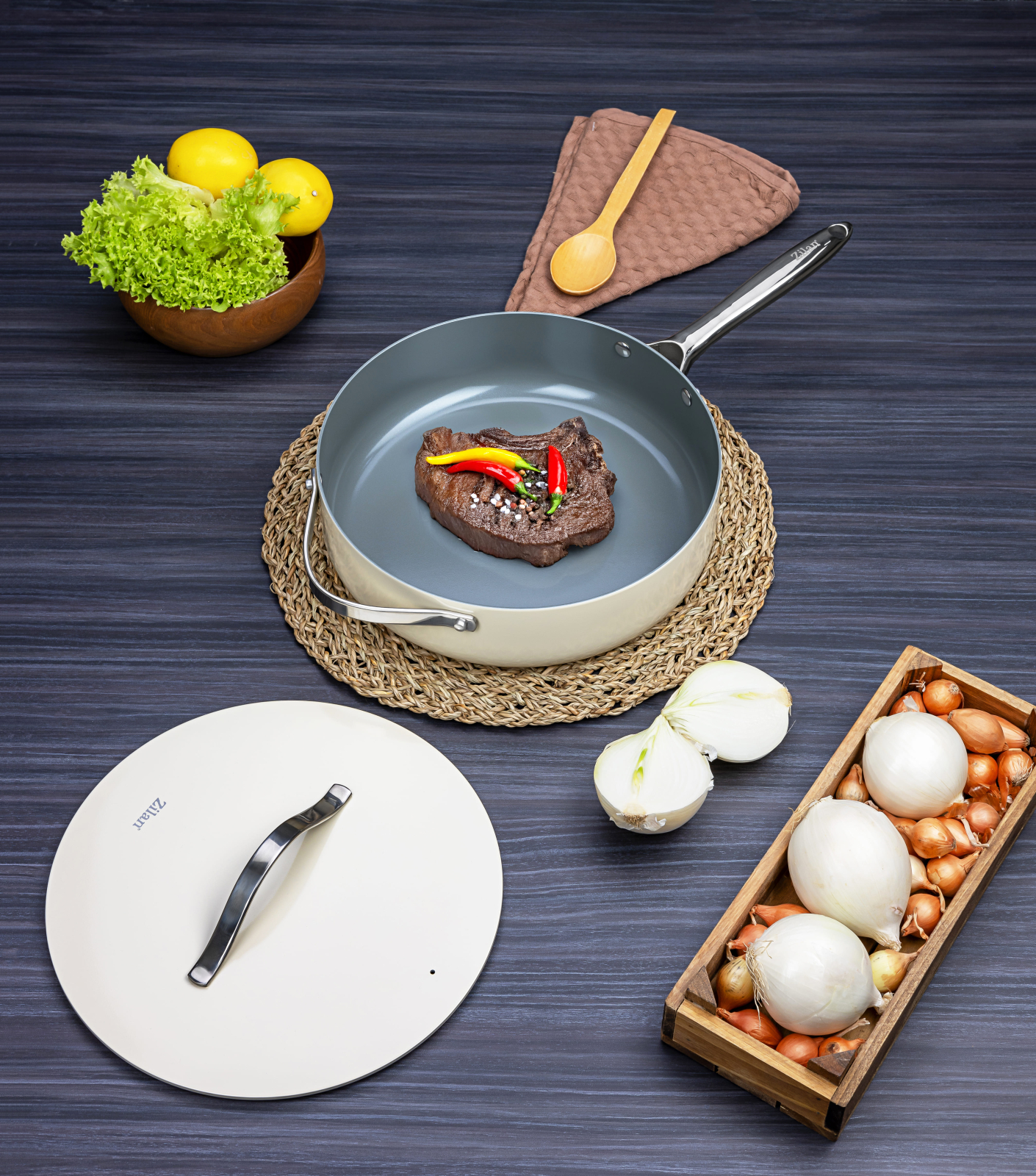 Tigaie inalta cu capac Zilan ZLN0880 din 5 straturi de material, maner inox, 28 cm