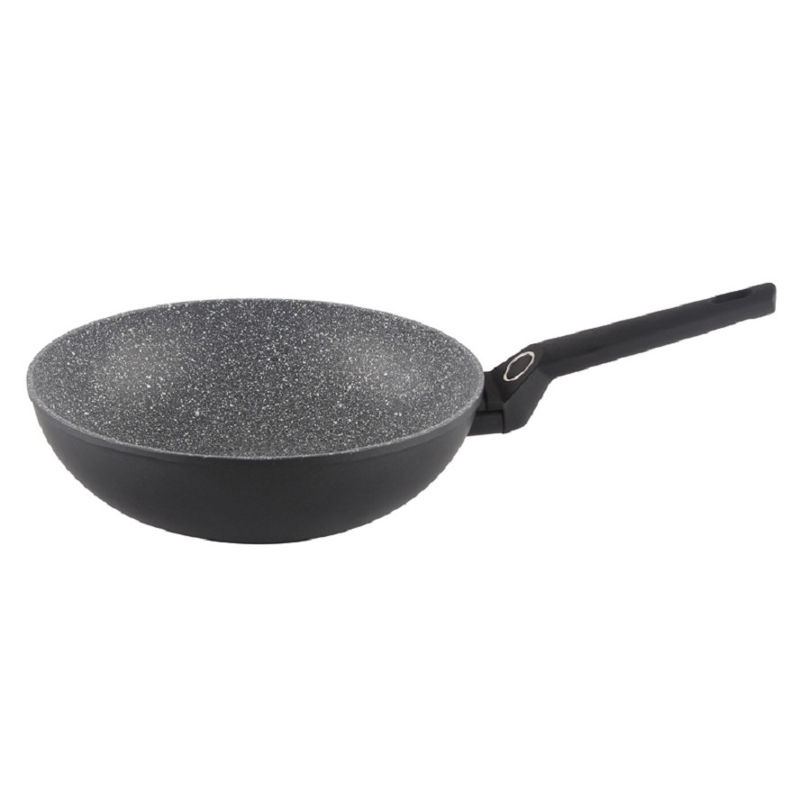 Tigaie wok Zilan ZLN3345, Diametru 28 cm, Adancime 9 cm, Material aluminiu, Compatibil inductie, Interior granit, Maner soft touch